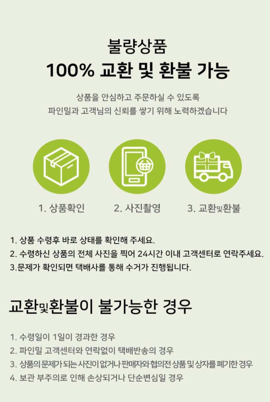 · 상품 불량 사유와 사진을 남겨 주시면 빠른 처리가 가능합니다.