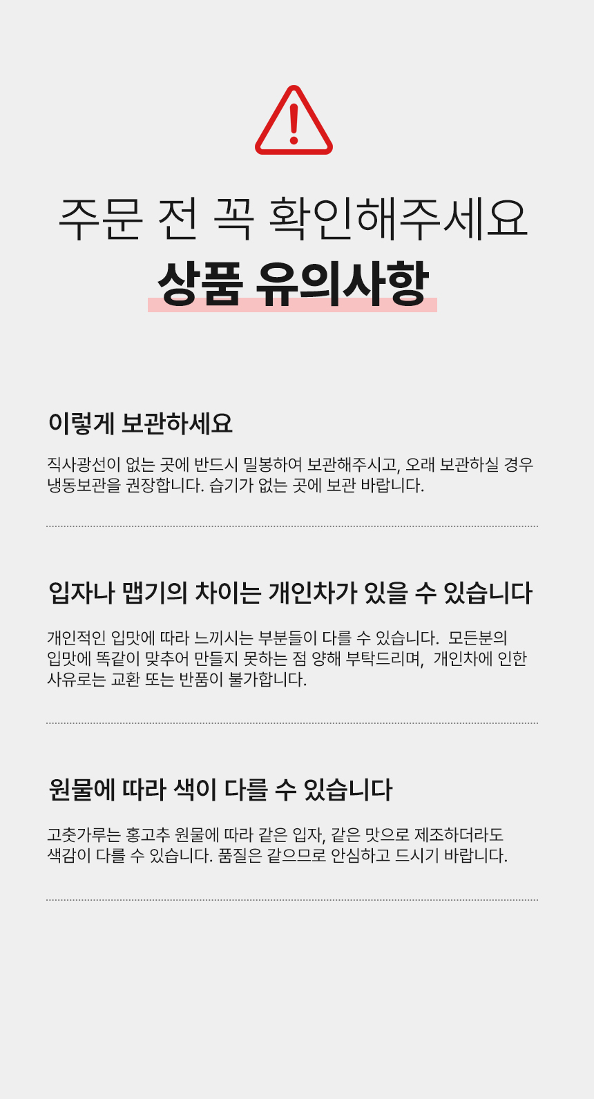 · 상품 불량 사유와 사진을 남겨 주시면 빠른 처리가 가능합니다.