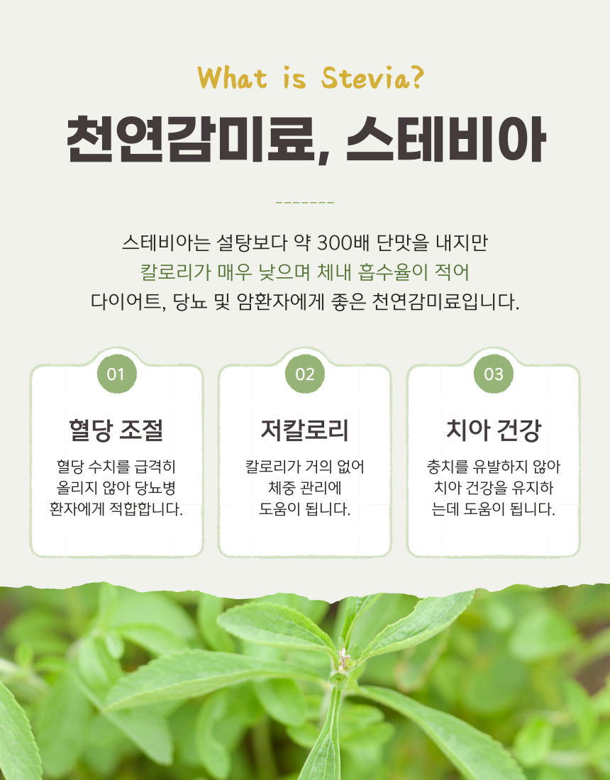혈당 걱정 없는 건강한 단맛! 천연 감미료 스테비아!